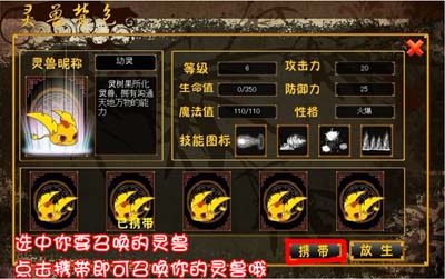 目前的宠物有幼灵、火灵、炎帝、土灵、大地之神等。