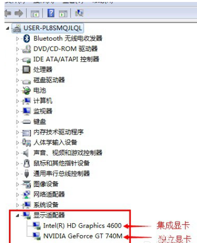 我们首先要确定电脑是否具有双网卡,我们以win 7系统为例,首选鼠标右键点击“计算机”,然后在弹出的菜单中点击“管理”,再点击打开窗口左侧菜单中的“设备管理器”,在设备管理窗口的显示适配器一栏我们可以看到电脑中安装的显卡列表,如下图所示,我们电脑中安装有二块显卡: